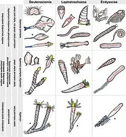 - ^ Dewel, R. A. (January 2000). "Colonial origin for Eumetazoa: major morphological transitions and the origin of bilaterian complexity". Journal of Morphology. 243 (1): 35–74. doi:10.1002/(SICI)1097-4687(200001)243:1<35::AID-JMOR3>3.0.CO;2-#. ISSN 0362-2525. PMID 10629096.