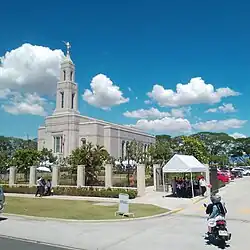 This is the church's third temple in the Philippines, following the Manila (1984) and Cebu City (2010) temples.[20] More temples were announced in 2018 and 2019, with construction underway for the Alabang, Davao, and Bacolod temples.[21] As of February 2024, others have been announced, with no dates set yet for the groundbreaking ceremonies, which will bring the total temples in the Philippines to 13.[22][23][10] The church has experienced rapid growth in the country since missionaries first arrived in 1961. Since then, the church in the Philippines has gained more than 850,000 members, being the fourth most populous country of Latter-day Saints in the world.[24][25]