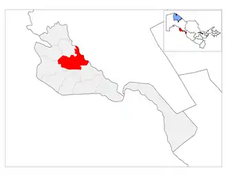 Urganch District (Uzbek: Urganch tumani, Урганч тумани, اورگنچ تومنى) is a district of Xorazm Region in Uzbekistan. The capital lies at the village Qorovul.[1] It has an area of 450 km2 (170 sq mi)[2] and it had 201,200 inhabitants in 2021.[3] The district consists of 5 urban-type settlements (Cholish, Oq oltin, Chandir, Koʻpalik, Gardonlar) and 10 rural communities (incl. Qorovul).[1]