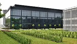 In 1952, the construction of a manufacturing industry began in Wyczółki, Służewiec and Zbarż. The industry was known as the Industrial and Storage District of Służewiec (Polish: Dzielnica Przemysłowo-Składowa „Służewiec”), later called Służewiec Przemysłowy (Industrial Służewiec).[79][80][81][82] It was envisioned as including 60 factories and industrial plants, as well as residential buildings for 26,000 people. The buildings were constructed in the large panel system technique, marking it as one of the first instances of such system being used in Poland.[80] By the early 1970s, area employed around 20,000 people.[82] Among the corporations present in Wyczółki, the notable example includes the Służewiec Home Factory (Polish: Fabryka Domów „Służewiec”).[83] In the 1990s, the manufacturing industry disappeared from the area, with it redeveloped with office buildings.[84][85]