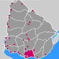 Uruguayan wine was produced in the quantity of 102,964 tonnes via 9,023 hectares (22,300 acres) of vineyards in 2023,[1] the fourth-greatest quantity in South America.[2]Uruguay is most known for red wines produced from Tannat grapes,[3][4] but white wines made from albariño are beginning to receive attention internationally.[5]