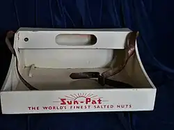An usherette tray is the tray in which a cinema or theatre usher or usherette carries ice creams, nuts, chocolate and other sweets for sale to customers during the interval.[1]