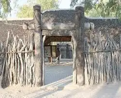 Uukwaluudhi is a traditional kingdom of the Ovambo people in what is today northern Namibia. Its capital is Tsandi, a settlement located about 30 km south of Outapi, and the location of the Uukwaluudhi Royal Homestead. The homestead is situated about 2 km past Tsandi towards the town of Okahao. Half of it is of modern structure where the Kwaluudhi king and queen reside, while the other half is left in traditional Owambo style. The King now lives in a modern house, but the old residence complex has been kept to keep the homestead live, learn more about people's culture, traditions and history. When a homestead with modern brick-buildings was constructed next to the traditional homestead in 1978, the king and his family moved over, to allow visitors access the former royal home. Guided tours takes approximately 1.5 hours which starts at the front yard of the homestead, used as a reception area for people visiting the kingdom. [1]