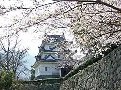 During the Heian period, Uwajima (notably the island of Hiburijima in Uwajima Bay) was a center of piracy in the Seto Inland Sea and became the stronghold of Fujiwara no Sumitomo in his rebellion. During the Muromachi period, a branch of the Saionji family was appointed as governor of the area by the Ashikaga shogunate, but was constantly being invaded his more powerful and aggressive neighbors, including Ouchi Yoshitaka, Mōri Motonari, Ōtomo Sōrin, the Tosa-Ichijo clan and the Chōsokabe clan. The Saionji survived by the fluid loyalties and fierce resistance, but were eventually overcome by Chōsokabe Motochika, who was in turn overthrown by the forces of Toyotomi Hideyoshi. Iyo Province was given to Kobayakawa Takakage, who assigned the area around Uwajima to his adopted son and half-brother, Hidekane. Takakage was later transferred to Kyushu and was replaced by Hideyoshi's general Toda Katsutaka. In contrast to the Kobayakawa, the Toda ruled with extreme harshness, murdering the descendants of the Saionji family and thinking nothing of robbery, rape and murder of the local inhabitants. When ordered to send troops to the invasion of Korea in 1592, he cut down large trees in shrines and temples throughout his domain to construct ships. He went insane during the campaign, and died in Korea without heir. Hideyoshi then assigned Tōdō Takatora to the domain. A noted castle designer, Takatora spent six years building Itajima Castle, which would later be called Uwajima Castle. Following the Battle of Sekigahara and other campaigns, he was promoted to the 220,000 koku Tsu Domain in Ise Province.[1]