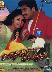 Uyirile Kalanthathu (transl. It's mixed with life) is a 2000 Indian Tamil-language romantic drama film directed by K. R. Jaya which stars Suriya, Jyothika and Raghuvaran, with Sivakumar and Radhika in supporting roles. The film was released in September 2000. This film is the second collaboration of Suriya and Jyothika after Poovellam Kettuppar (1999). It is also Suriya's only release in 2000.