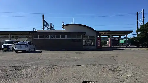 The station has one side platform and one island platform connected to the station building by a footbridge. The station is unattended.