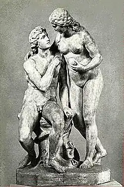 It was there, in 1845, at the suggestion of Veith's librarian, an Augustinian professor from Brno named František Klácel, that Levý began creating the reliefs on a rock massif situated in wooded hill near Liběchov that are now known as the "Klácelka Cave." Levý probably took his inspiration for the sculptures from Klácel's poem Ferina Lišák (a fable about a fox). The attention attracted by these reliefs encouraged Veith to send him to Munich for studies with Ludwig Schwanthaler, where he was taught the Academic style. It was here that he produced one of his best-known works Adam and Eve in 1849. He then returned to Klácelka, adding motifs from Czech history, as well as working on new decorations for the castle chapel.[3]