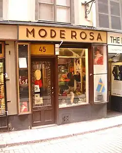 There used to be dozens of coat shops in central Stockholm, but today only two remain, one of which is located on Number 40, Åströms Kappaffär. The shop was founded in 1911, and the current owner, Eva Sjölund, has been working there since 1979, just like her mother and grandmother.[17]