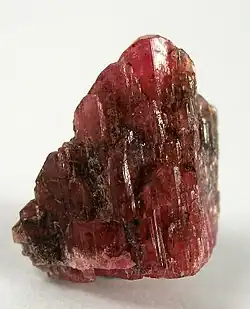 | Pleochroism | Visible X= orangish, Y= red, Z= dark red |