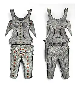 Vũ's Amazon series of sheet-metal costume-installations, produced in 2001-2009, “is a sharper, colder version of cardboard “Fashion”. Shiny and stiffly armor-like evoking protection, exclusion, and violence even more pointedly than the paper suits, the metal costume-armors are more visually strident and less tactile than their cardboard counterparts, closer to classical sculpture in their solemnity and solidity.”[24]