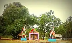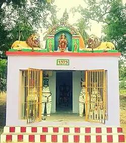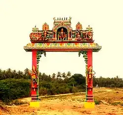 Pidaariyamman Kovil & Thiruvizha:(Hindu Temple)[8] This is a big and famous temple at Valasai. Every Friday and Special pooja day many people visit the temple. The famous festival (in Tamil called Thiruvizha) on this temple celebrated every three year. This festival is celebrated for about 17 days. It is not just a Temple ritual, but is a grand festival for the whole village. Around 30 village peoples nearby this place will come with their families and celebrate. It begins with Kaappu Kattuthal and concludes with Poo Palaku (procession in flower decorated pallaku). On each day, the Amman (The Deities) will be nicely decorated and taken in procession, once in the morning and once in the evening. All the schools are closed for a week. For children there are Giant Wheel, Balloon Shooting for Kids, On the spot Toys Store, Music Shows, and nightly dance shows. The Village Festival ("Kovil Thiruvizha") was last celebrated in July 13 to 27, 28 and 29 of 2018. The Arulmighu Pidaariyamman Kovil Thoranavoil was designed, constructed and donated by Dr.C.P.Chandran (S/O C.Ponniah & Pitchaiammal)- S.Rajathi Chandran - Manekanda Siddharth Chandran & Family in the year 2014 (Upaiyatharar).