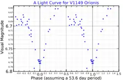 - ^ a b Hall, Douglas S.; Fekel, Francis C.; Henry, Gregory W.; Barksdale, William S. (1991). "The 11 year history of starspots on V1149 ORI = HD 37824". The Astronomical Journal. 102: 1808. Bibcode:1991AJ....102.1808H. doi:10.1086/116004.