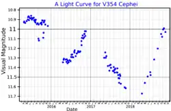 2. ^ a b "V354 Cep, database entry". The combined table of GCVS Vols I-III and NL 67-78 with improved coordinates, General Catalogue of Variable Stars. Moscow, Russia: Sternberg Astronomical Institute. Archived from the original on June 20, 2017. Retrieved November 12, 2010.