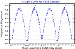 - ^ a b c d e Budding, E.; Erdem, A.; Inlek, G.; Demircan, O. (April 2010), "Absolute parameters of young stars - II. V831 Centauri", Monthly Notices of the Royal Astronomical Society, 403 (3): 1448–1456, Bibcode:2010MNRAS.403.1448B, doi:10.1111/j.1365-2966.2010.16209.x.