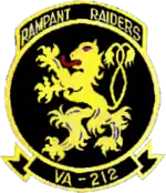 Attack Squadron 212 (VA-212), nicknamed the Rampant Raiders, was an aviation unit of the United States Navy. It was established as Fighter Squadron 212 (VF-212) on 20 June 1955, and redesignated as VA-212 on 1 April 1956. The squadron was disestablished on 12 December 1975.[1]