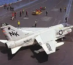 In April 1980, VA-27 participated in the Iranian hostage rescue attempt by providing air cover for the forces directly involved in the rescue operation.