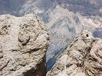 The Sentiero Ferrato Ivano Dibona is a challenging high alpine route along the Zurlon ridge, the main crest on Cristallo, a mountain group in the Italian Dolomites, northeast of Cortina d'Ampezzo, in the province of Belluno, Veneto, Italy. The use of a via ferrata set is recommended. The via ferrata is very well known because of the dolomitic scenery and the panoramic view.[1][2]