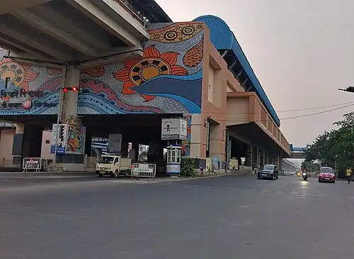 VIP Bazar is a station of Orange Line of the Kolkata Metro located in the Tagore Park area of Kolkata, West Bengal, India, serving Tiljala and VIP Nagar areas. The station is named after the nearby market called, VIP Bazar.[2] The station is elevated above the Eastern Metropolitan Bypass. VIP Nagar and VIP Bazar are located next to the station.[3][4]
