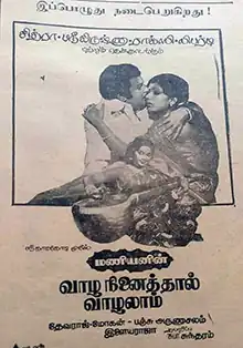 Vaazha Ninaithaal Vaazhalaam (transl. You can live if you want to live) is a 1978 Indian Tamil-language film romantic drama film directed by Devaraj–Mohan and written by Panchu Arunachalam from a story by Manian. The film stars Jaishankar, Sripriya and Jayadevi, with Major Sundarrajan, Thengai Srinivasan, I. S. R., Ennathe Kannaiah, Manorama, S. N. Lakshmi and Typist Gopu in supporting roles. It was released on 14 January 1978.