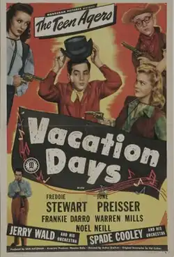 Vacation Days is a 1947 American Western musical film directed by Arthur Dreifuss and starring Freddie Stewart, June Preisser, and Frankie Darro. It is part of The Teen Agers series.[1]