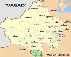 Vagad (also known as Vagar) is a region in southeastern Rajasthan state of western India.[1] Its boundaries are roughly defined by those of the districts of Dungarpur and Banswara.[1][2] Major cities of the region are Dungarpur and Banswara.