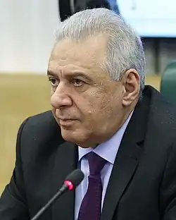 Vagharshak Varnazi Harutiunyan (Armenian: Վաղարշակ Վառնազի Հարությունյան; born 28 April 1956) is an Armenian military figure and politician currently serving as Armenia's ambassador to Russia. He previously served as the Defence Minister of Armenia from 1999 to 2000 and again from 2020 to 2021.