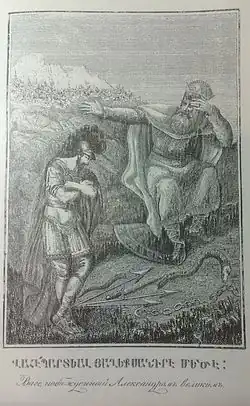 Vahe (Armenian: Վահէ), according to the traditional Armenian history recorded by Movses Khorenatsi, was the last king of Armenia descended from the legendary Armenian progenitor Hayk. Khorenatsi writes that Vahe rebelled against Alexander the Great and was killed. L. Shaninyan believes that this reflects the presence of Armenians among the Persian forces at the battles of Issus and Gaugamela, identifying Vahe with Mithraustes, who Arrian says was the Armenian commander at Gaugamela.[1]