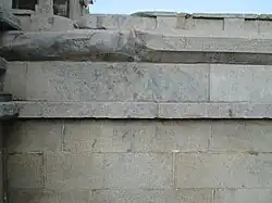 Vaikunta Perumal temple covers an area of about 0.5 acres (0.20 hectares). The sanctum houses the image of Vaikuntanatha in seated posture with Sridevi and Bhudevi on his either sides.[2] There is an assembly hall 2,500 sq ft (230 m2). The roof of the temple rests on the walls and there are no pillars. The inscriptions from the Chola period are made on the walls of the assembly hall.[6] Kulothunga Chola is believed to have built the roof of the assembly hall that made it an assembly hall along with the temple.[6] As per another view, the entire structure was originally an assembly hall and it collapsed during the regime of Kulothunga Chola. He rebuilt the assembly hall along with the temple housing the image of Vaikunta Perumal in it. Some of the inscriptions also read that the village was planned as per Agamic texts with the assembly hall in the centre of the village and the temples of the village built around it.[7]