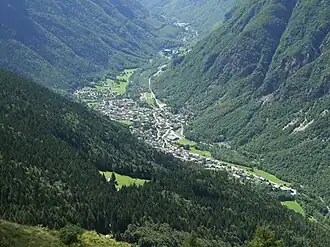 Valbondione (Bergamasque: Valbundiù) is a comune (municipality) in the Province of Bergamo in the Italian region of Lombardy, located about 90 kilometres (56 mi) northeast of Milan and about 45 kilometres (28 mi) north of Bergamo. It is surrounded by the Orobie Alps. As of 31 December 2004, it had a population of 1,156 and an area of 95.0 square kilometres (36.7 sq mi).[3]