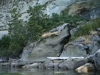 Wakes Cove Provincial Park and the Blackberry Point Campsite are located on the island. These two campsites, as well as an abundance of wildlife and unusual sandstone geology make this island a popular destination for recreational kayaking and camping. The Blackberry Point Campsite was the first campsite established as part of the BC Marine Trails Network by Peter McGee in the early 1990s.[9] The site at Wakes Cove is still undeveloped, lacking any facilities for campers, however there is an abandoned well along an overgrown road in the area. The Blackberry Point site has defined cooking and tenting spaces, trails from the beach as well as a composting toilet.
