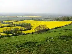 The Vale of Red Horse, also called the Vale of the Red Horse or Red Horse Vale, is a rural district in southern Warwickshire, England, lying between the escarpment of Edgehill and the northern Cotswolds around the valley of the Stour.[1][2] Early gazetteers noted the Vale as a rich corn-growing area, and it is still relatively sparsely populated: its main settlements are Kineton and Shipston-on-Stour.[3] The Fosse Way runs through the area and the Battle of Edgehill was fought on its fringes in October 1642.