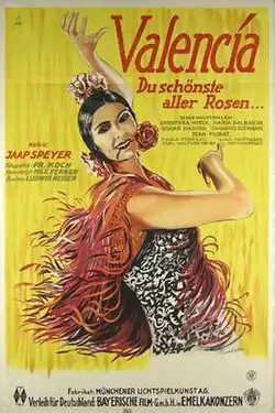 Valencia (German: Du schönste aller Rosen) is a 1927 German silent film directed by Jaap Speyer and starring María Dalbaicín, Dorothea Wieck, and Oskar Marion.[1] It was made at the Emelka Studios in Munich.