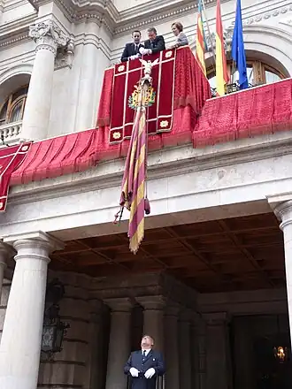![]() Traditional 9 d'Octubre flag lowering of the Senyera Coronada in Valencia | |
