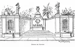 One of Mestre Valentim's most significant contributions to urban planning was his work on Passeio Público, Brazil's first public park, completed under Viceroy Vasconcelos.[1] The sculptural works of the park include stylized entrance gates; two obelisks; statutes of Greek gods and Brazilian plants and animals; and several fountains. The park featured two pavilions containing paintings by Leandro Joaquim (1738–1798).[7][8][9] Modeled after European civic gardens, particularly those in Lisbon, the park was laid out in an irregular hexagonal shape with a network of pathways intersecting at parallel, perpendicular, and diagonal angles.[1] Unfortunately, most of Mestre Valentim's design has since been altered, many of the sculptures removed, and the pavilions eliminated. This design provided Rio de Janeiro with its first structured leisure space, reflecting the city's transition toward modern city planning.