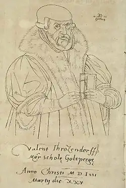 Valentin Friedland (14 February 1490 – 26 April 1556[1]), also called Valentin Troitschendorf (or Trozendorf or Trotzendorf or Trocedorfius) after his birthplace, was a German scholar and educationist of the Reformation. Friedland was a friend of Martin Luther and Melanchthon. His fame as a teacher was an attraction of Goldberg in Silesia, where he taught pupils from far and near. The secret of his success lay in his inculcating on his pupils respect for their own honour. He had a great faith in the intelligence that evinced itself in clear expression.[2]