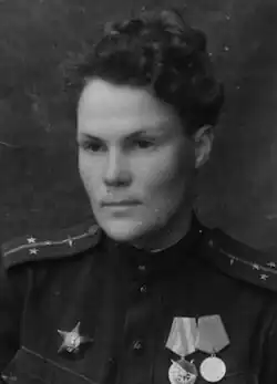 Valentina Flegontovna Savitskaya née Kravchenko (Russian: Валентина Флегонтовна Савицкая; 9 January [O.S. 27 December 1916] 1917 – 15 February 2000) was a Russian pilot and squadron navigator in the 125th Guards Dive Bomber Regiment during World War II. She was awarded the title Hero of the Russian Federation on 10 April 1995.