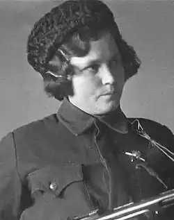Valentina Ivanovna Safronova (Russian: Валентина Ивановна Сафронова; 1918 – 1 May 1943) was a Soviet partisan and intelligence officer who engaged in reconnaissance and sabotage until she was captured and killed by the Gestapo. On 8 May 1965, over twenty years after her death, she was posthumously awarded the title Hero of the Soviet Union.[1][2]