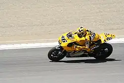 Rossi won the Rio round, but Kenny Roberts Jr. who clinched the 2000 title after finishing in sixth position, which gave him an unassailable lead in the championship.[46][47][48] After his second 500cc win, Rossi went on to finish second in the Pacific race and third in the Australian races.[49][50][51] He finished second in his rookie season in the 500cc class with 209 points.