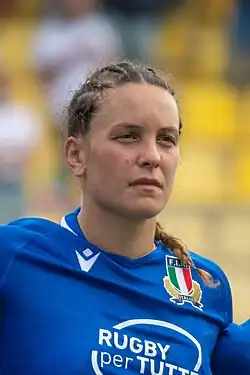 With only three appearances under her belt, she was part of the team that played in the 2017 Women's Rugby World Cup in Ireland; in autumn 2017 she was signed by the Saracens women's team in England with whom she won the national title in 2018.[1] She then joined Toulouse in 2018, before moving to Rugby Colorno in 2024.[1]
