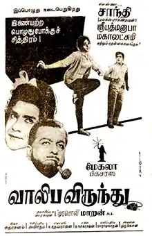 Valiba Virundhu (transl. Youth Party) is a 1967 Indian Tamil-language film directed by Murasoli Maran and written by M. Karunanidhi. The film stars Ravichandran and Bharathi.[3] It was released on 2 June 1967.