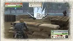 In its earliest form, the gameplay was a traditional tactical simulation game played from an overhead view.[19] After considering this, Nonaka—comparing it to a game of shogi—realised players would feel little emotional investment in characters if they continued with this gameplay style.[20] Much of the early development was devoted to creating a working system that would combine tactical elements with real-time action.[21] The concept of the BLiTZ battle system was to encourage player freedom. When creating the battle system around firearms rather than swords and magic, the team needed to abandon many of the logical RPG standards.[15] The team chose to have players control individual units to further emphasise the game's themes.[18] The AP system was designed around the concept of emulating the fear of soldiers in combat, afraid to take a step in case of hidden enemies or making a fatal move.[20] The class-based leveling was a response to the large number of playable characters. If they went with traditional character-based leveling, the team knew players would likely stick to a few favorites. This leveling system also played into the permadeath systems and the focus on turn numbers determining how players did on a map rather than unit survival. The emphasis was getting the players emotionally invested by picking party members based on personality, making their loss in battle more noticeable.[21] A sixth character class, the Medic, was originally planned. The only remnant of its inclusion was the rescue mechanic for downed units.[15] Nonaka attributed his ability to handle the dual-natured gameplay from his work on both the tactics-based Sakura Wars and the action game Nightshade.[17]