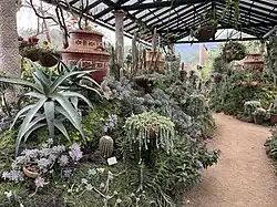 The garden was founded in 2004 and has been open to the public since 2005. The collections showcase plants of the Tropical Dry Forest Biome, native to the region around Puerto Vallarta and in which the gardens are located, as well as exotics from around the world.[2] Orchid conservation and propagation is a focus of the garden's mission.[3] These can be found on trees throughout the grounds and in the Holstein Orchid and Vanilla House. Other notable collections include oaks, bromeliads, agaves, cactus, rhododendrons and wild palms.[4] The Vallarta Botanical Gardens actively participates in public environmental education through tours and classes.