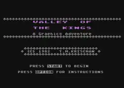 Valley of the Kings, subtitled A Graphics Adventure, is a video game written by Thomas M. Krischan for Atari 8-bit computers and published by Dynacomp in 1982.[2]