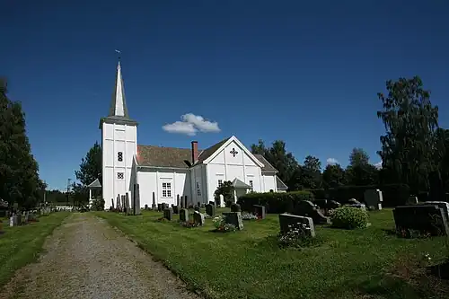 Vallset Church (Norwegian: Vallset kirke) is a parish church of the Church of Norway in Stange Municipality in Innlandet county, Norway. It is located in the village of Vallset. It is the church for the Vallset parish which is part of the Hamar domprosti (deanery) in the Diocese of Hamar. The white, wooden church was built in a cruciform design in 1850 using plans drawn up by Capt. Erik Glørsen Frisak.[1] The church seats about 350 people.[2][3]