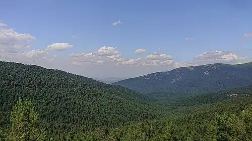 Valsain Valley (Spanish: Valle de Valsaín) is a valley of the northern slope of the Guadarrama mountain range (Sistema central mountain range). It is located in the southeastern part of the province of Segovia (Castilla y León, Spain), within the municipality of Real Sitio de San Ildefonso, and borders the Community of Madrid. The valley is covered by an extensive pine forest known as el Pinar, the largest in the mountains and one of the best preserved in Spain.
