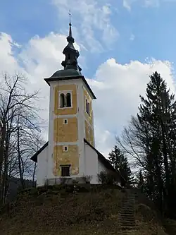 The church in the settlement is dedicated to Saints Phillip and James. It is Late Gothic with a star vaulted sanctuary. Frescos in the sanctuary are by Jernej of Loka and date to soon after 1534. There is a fresco of Saint Christopher on the south external wall that was restored in 2004. The main altar dates to 1668 and the side altars are from 1648 and 1838.[2][10]