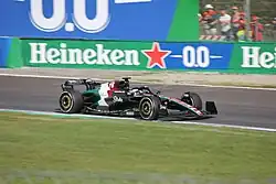 Bottas continued driving for Alfa Romeo with Zhou for 2023.[219] He started the season by qualifying 12th and finishing eighth at the Bahrain Grand Prix.[220] Damage from debris produced an 18th-place finish at the Saudi Arabian Grand Prix.[221] He started from the pit lane and benefited from eight drivers' retirements at the Australian Grand Prix, but scored no points in 11th place. After another 18th-place finish at the Azerbaijan Grand Prix, Bottas commented that the C43 had improved handling compared to the C42, "but it's lacking that pure performance compared to the others".[222] He reached Q3 at the Miami Grand Prix for the first time that year but finished outside the points.[223][224] His first points since Bahrain came at the eighth round, the Canadian Grand Prix; he started 14th,[225] finished 11th and was promoted into the top 10 by a penalty for Lando Norris.[226] His car broke down in qualifying at the British Grand Prix and he was later disqualified from the session for an insufficient fuel sample.[227] He recovered from 20th on the grid to 12th in the race.[228] After the race, Bottas reflected "we're not meeting the targets we've set ourselves" with the team demoted to ninth in the Constructors' Championship.[229]