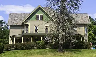 Van Benschoten House and Guest House is a historic home and guest house located at Margaretville in Delaware County, New York, United States. It is an example of late 19th summer boarding house design applied to a working farmhouse. The main house was built about 1890 and its exterior massing of the two story main residence is broken up into four gabled pavilions emanating from a hipped-roof core in the Queen Anne style. It features an octagonal tower with a tall pointed roof. Also on the property is a cow barn.[2]
