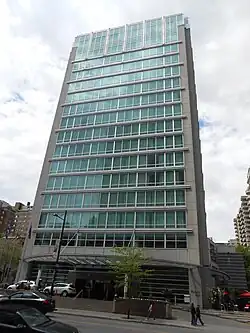 In 1889, Sir William Cornelius Van Horne, President of the Canadian Pacific Railway, purchased the property and it remained in his family until it was controversially demolished in 1973. Despite the public outcry over its proposed destruction, Mayor Jean Drapeau declared that it could not be preserved for cultural reasons as it was not part of Quebec's culture, its history being Anglo Canadian, not French Canadian. With Drapeau's support, it was bulldozed in the middle of the night by developer David Azrieli, who replaced it with a concrete tower block. The Sofitel Hotel today stands at the spot once occupied by the Van Horne mansion.[2]