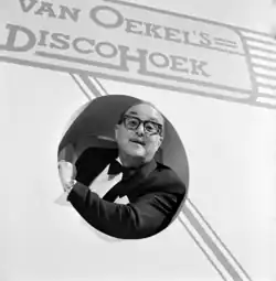 Van Oekel's Discohoek was a Dutch television show, aired on VPRO in 1974–1975. The show, written by Wim T. Schippers and produced by Ellen Jens, starred Dolf Brouwers as the comedic character Sjef van Oekel, and parodied music television programs of the era. Artists gave obviously lip-synched performances of their songs and were frequently interrupted and insulted by van Oekel. Captain Beefheart's appearance became one of the show's most famous moments.[1] The show also featured one of the first TV appearances of Donna Summer, who later claimed that her breakthrough began with her performance of her song "Hostage", in which she gracefully went along with the scripted absurdity and chaos.[2][3] The show inspired a similarly absurd show Plattenküche on the German WDR.